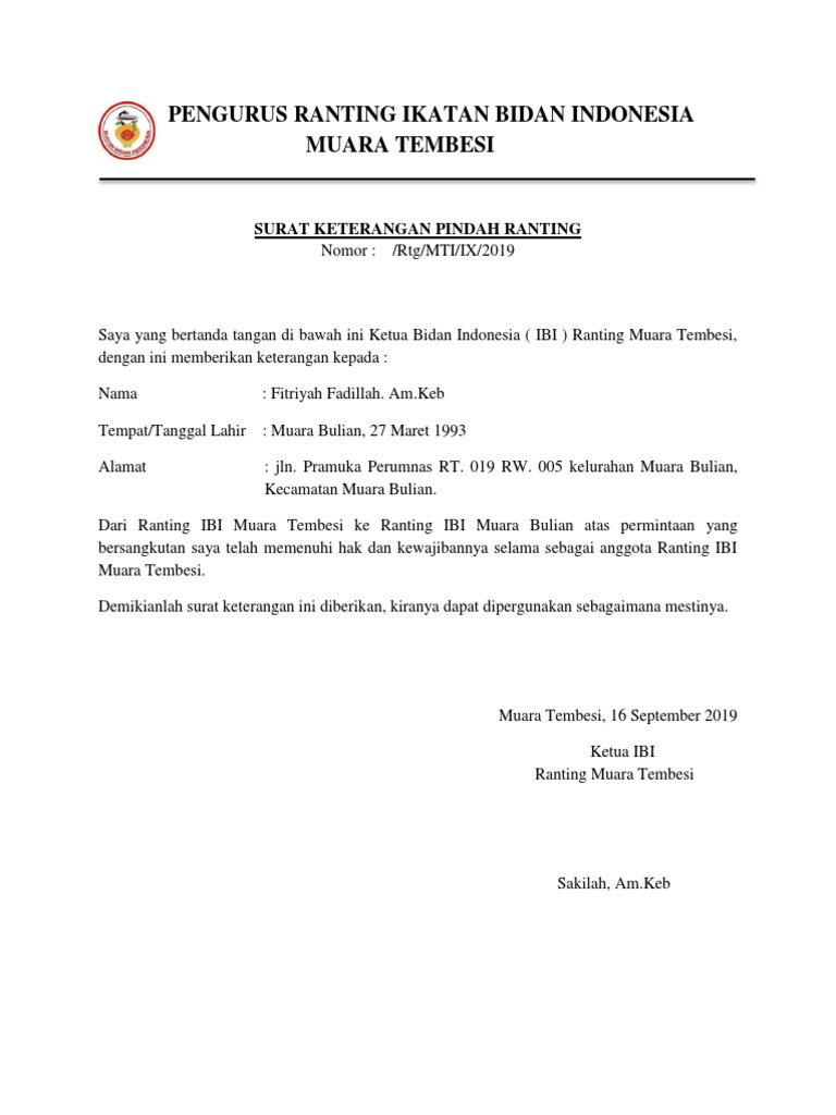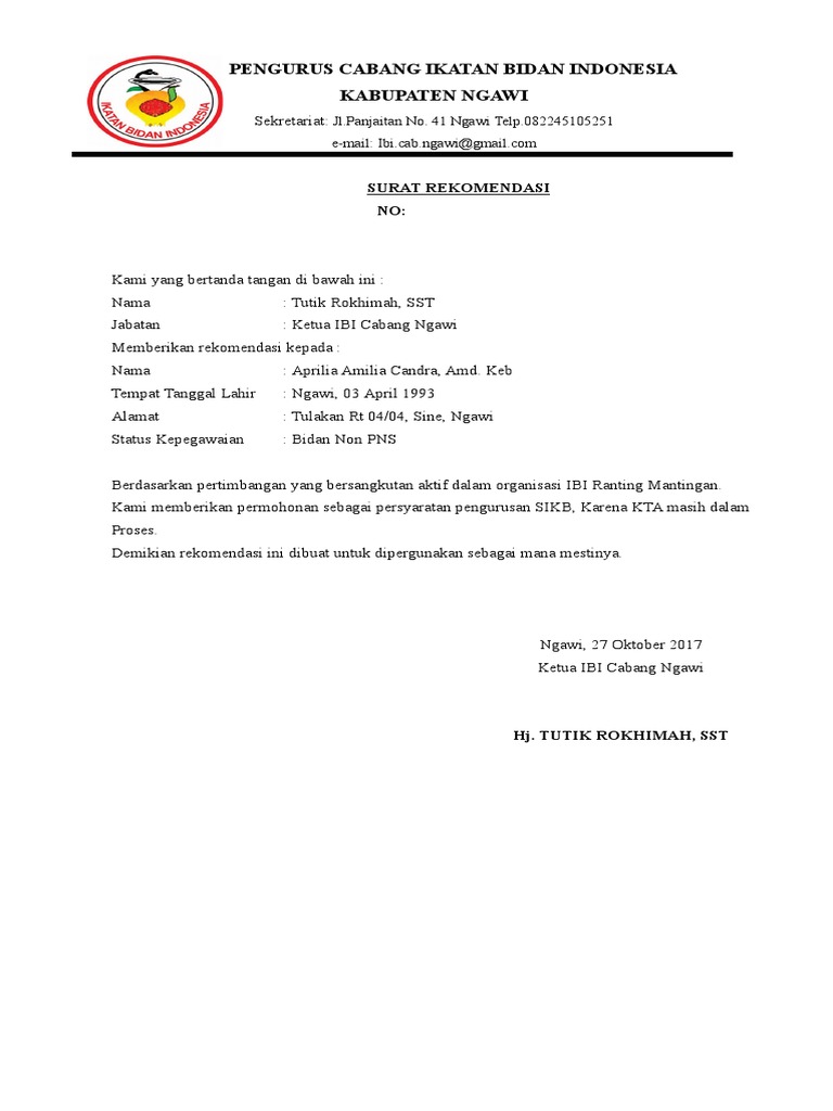 Uncategorized Contoh Surat Rekomendasi Pindah Ranting Ibi Hal ini bisa dilakukan karena jarak tempuh tempat kerja yang terlalu jauh atau karena kemampuannya lebih dibutuhkan di tempat lain Demikian surat rekomendasi ini dibuat dan dapat dipergunakan sebagaimana mestinya