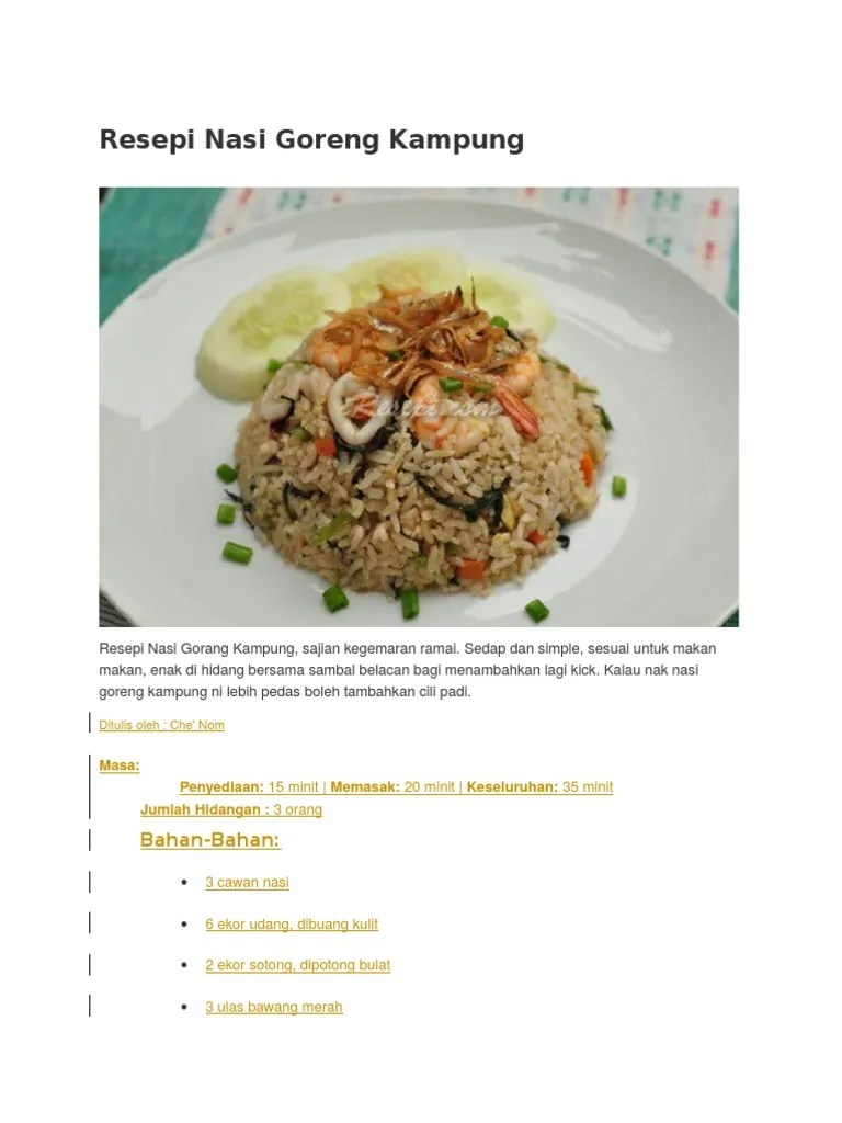 Uncategorized Resepi Nasi Goreng Cina Che Nom Karena selain praktis rasanya juga lezat Nasi goreng menjadi salah satu menu masakan andalan berasal dari indonesia