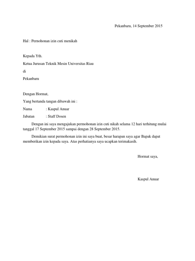 Uncategorized Surat Pengajuan Cuti Menikah Pengajuan cuti semacam ini biasanya disertai dengan surat keterangan dari dokter atau rumah sakit apabila diperlukan Baik pegawai negeri sipil maupun karyawan swasta memiliki cuti